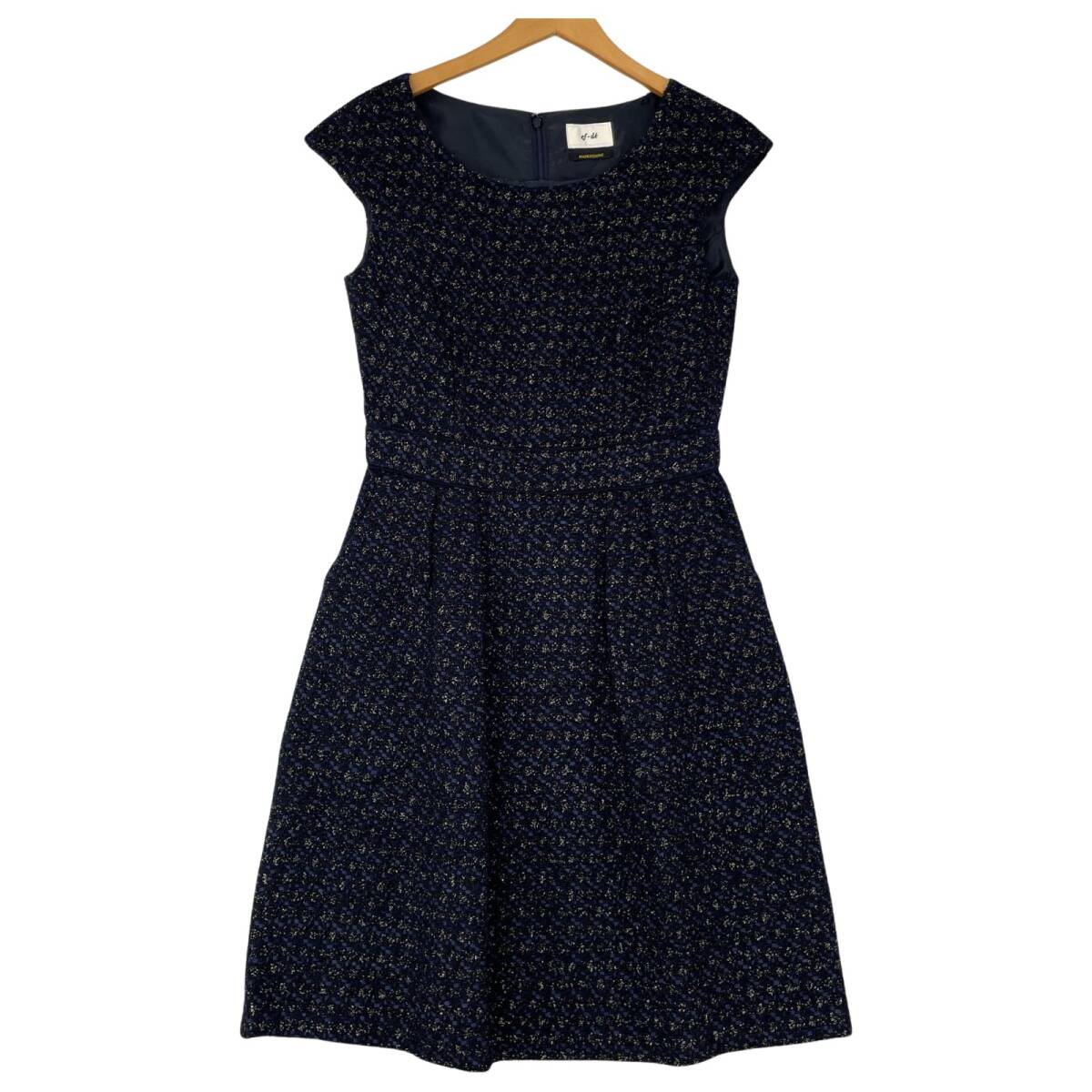 - ef-de エフデ ウール混 ツイード フレンチスリーブ ワンピース size9/ネイビー系