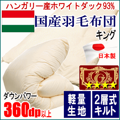 - 羽毛布団 キング ハンガリー産ホワイトダックダウン 93% エクセルゴールラベル 二層キルト ツインキルト 軽量生地 日本製