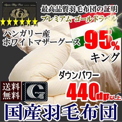 - 羽毛布団 キング 日本製 ハンガリー産ホワイトマザーグースダウン プレミアムゴールド ダウンパワー 440dp 以上 生成り