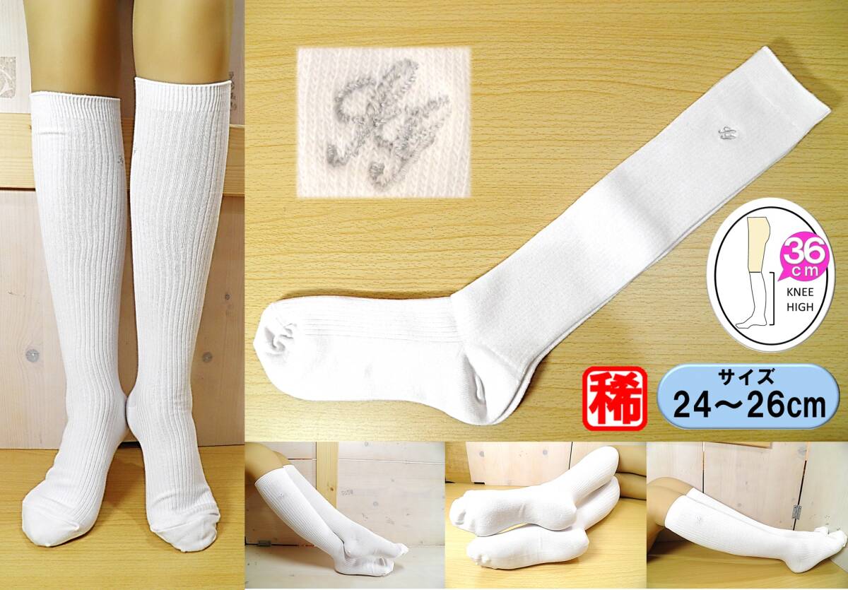 > 【レッグウェア★未使用品】3×1リブ 白 ハイソックス◆両面ロゴ刺繍 洗足学園 スクールソックス◆24-26cm◆36cm丈◆細身◆指定ソックス