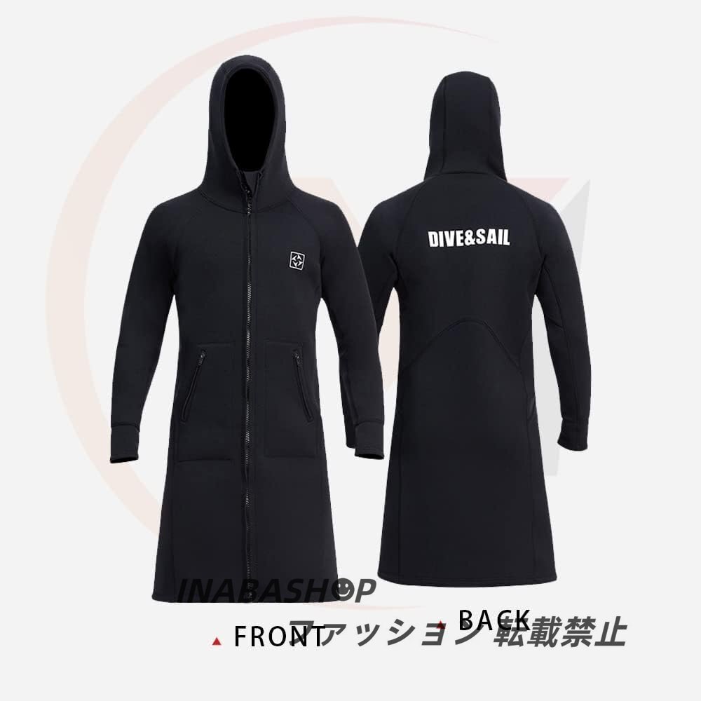 - ボートコート 3mm 男女兼用 ロング ネオプレン ジャケット サーフコートウェットスーツ バイクサイクリング 防風サーフィン 釣りダイビング