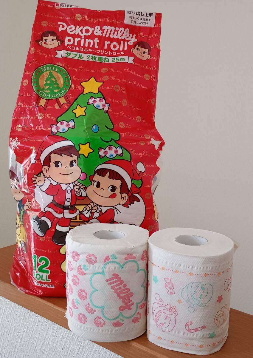 - レトロ 不二家 ペコちゃん ペコ&ミルキー プリントロールダブル 2枚重ね 25m トイレットペーパー 2種2個 バンダイ 2013年