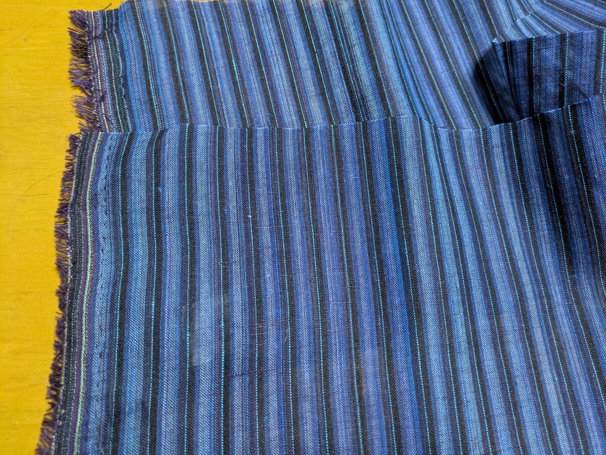 - リネン 100% 先染めストライプ ネイビー 140m幅 3mカット 生地 ②