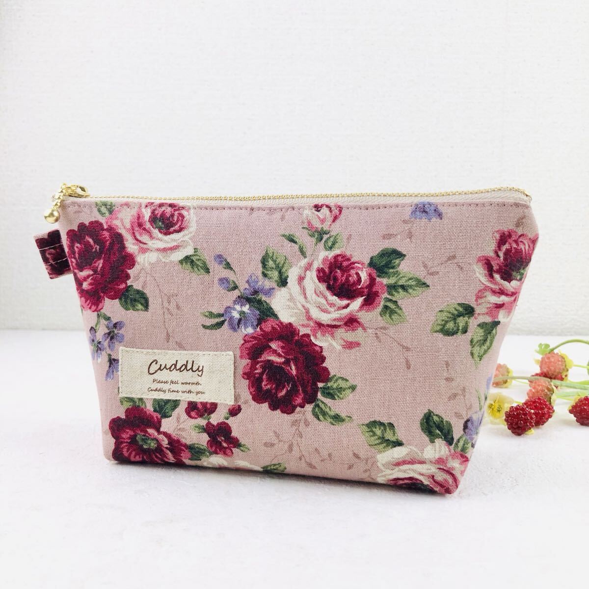 - アンティークローズ コスメポーチ ハンドメイド ファスナーポーチ ポーチ 小物入れ ミニポケット付き 薔薇