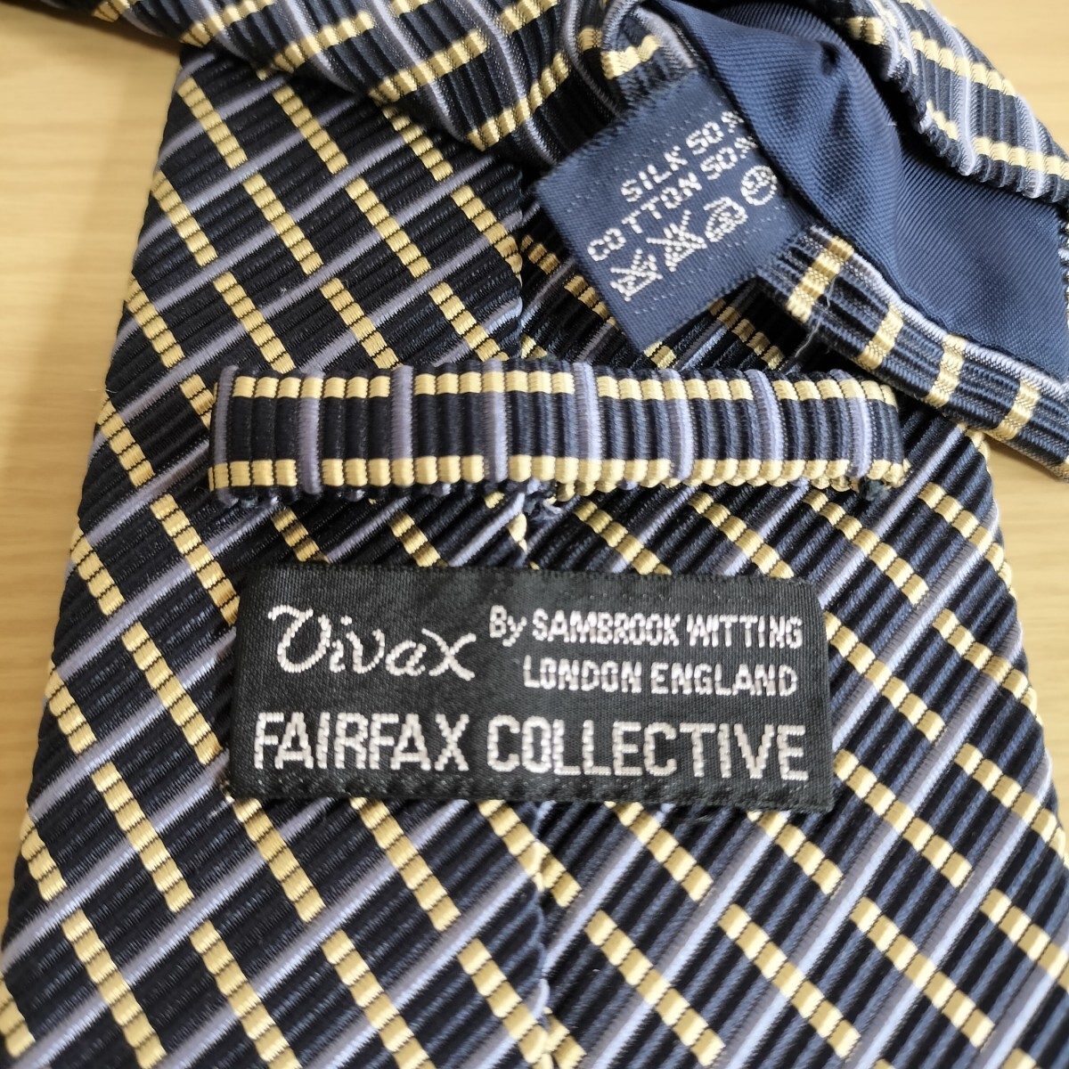 - FAIRFAX(フェアファクス)紺ゴールド線チェック模様ネクタイ