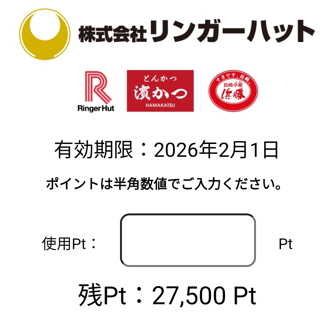> 送料無料 URL通知★ リンガーハット 株主優待ポイント 27500円分 食事ご優待27500ポイント