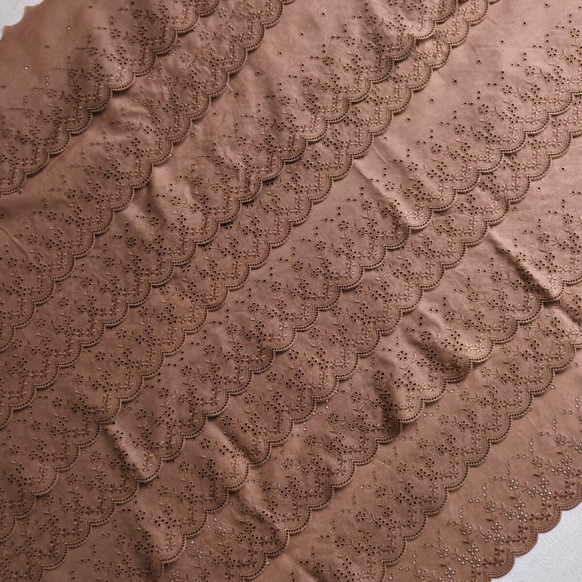 - コットンレース 幅広レース 9.8m ブラウン 綿レース 小花模様 カットワーク ヴィンテージ