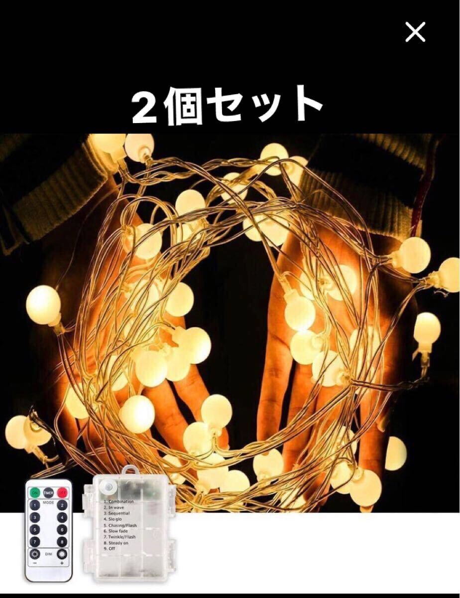- 2個セット LED イルミネーションライト8モード5m 50球電池式 リモコン付