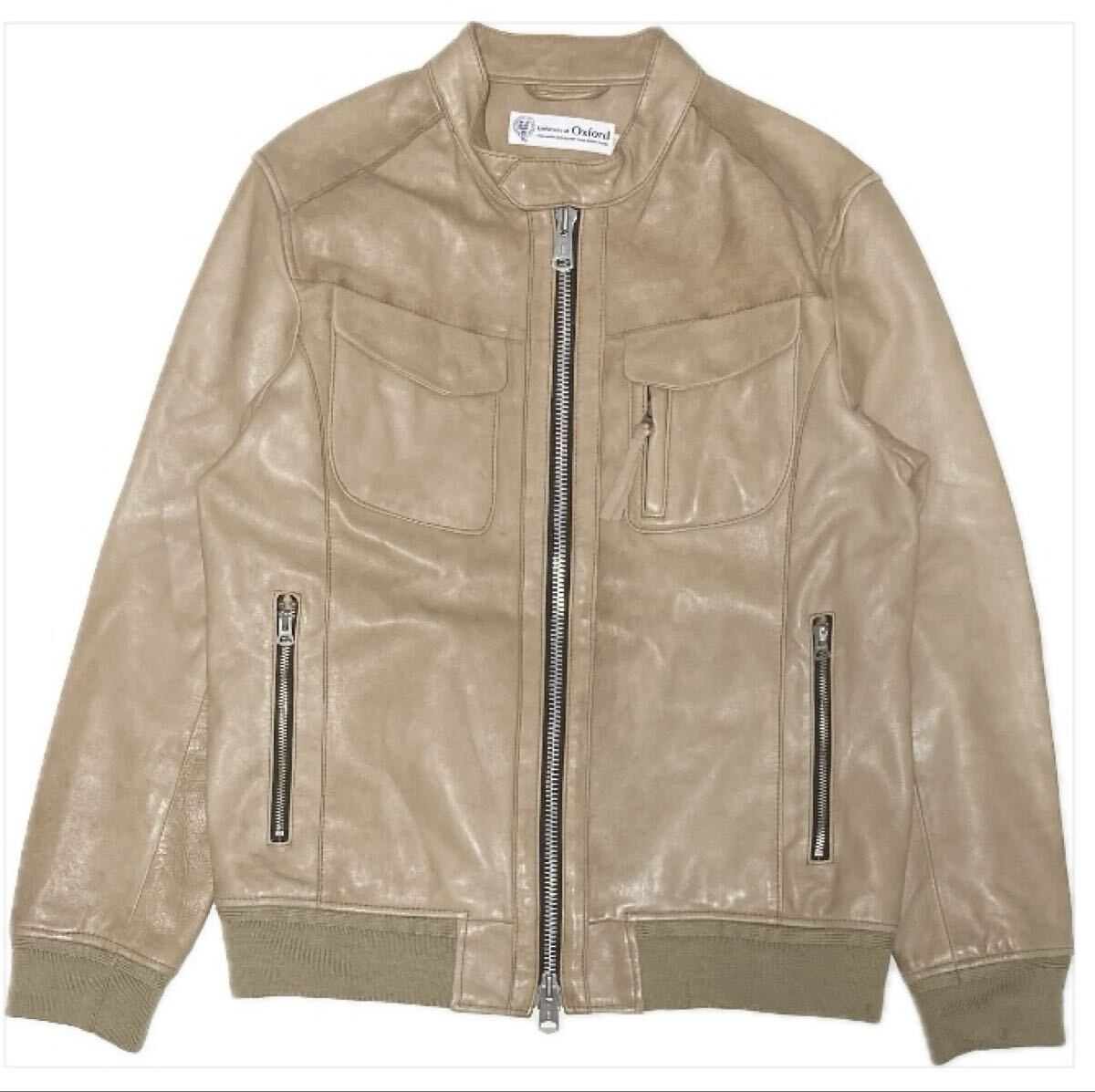 - University Of Oxford オックスフォード大学 レザージャケット ビッグサイズ ヌメ革 ノーカラー ダブルジップ ラムレザー 羊革