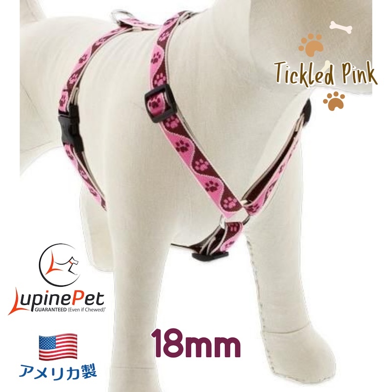 - ローマンハーネス・Sサイズ 18mm幅ピンクパウ柄Tickled Pink 30-50cm LUPINEルパイン アメリカ製 軽量丈夫 製造終了レア