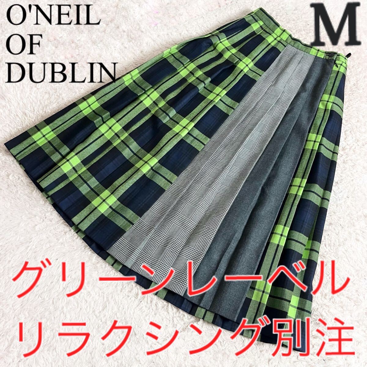 > O'NEIL OF DUBLIN オニールオブダブリン グリーンレーベルリラクシング別注 ロングスカート プリーツスカート フレア チェック ウール M