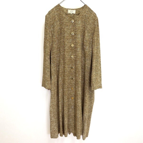 - #a ボルボネーゼ BORBONESE ワンピース 50 茶系 うずら柄 長袖 シャツ ブラウス ロング イタリー レディース [940446] k01