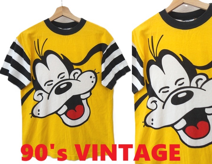 > 90's ヴィンテージ/Disney:ディズニー/J.G.HOOK社製造 グーフィー 染み込みプリント Tシャツ/イエロー/Msize相当/ミッキーマウス