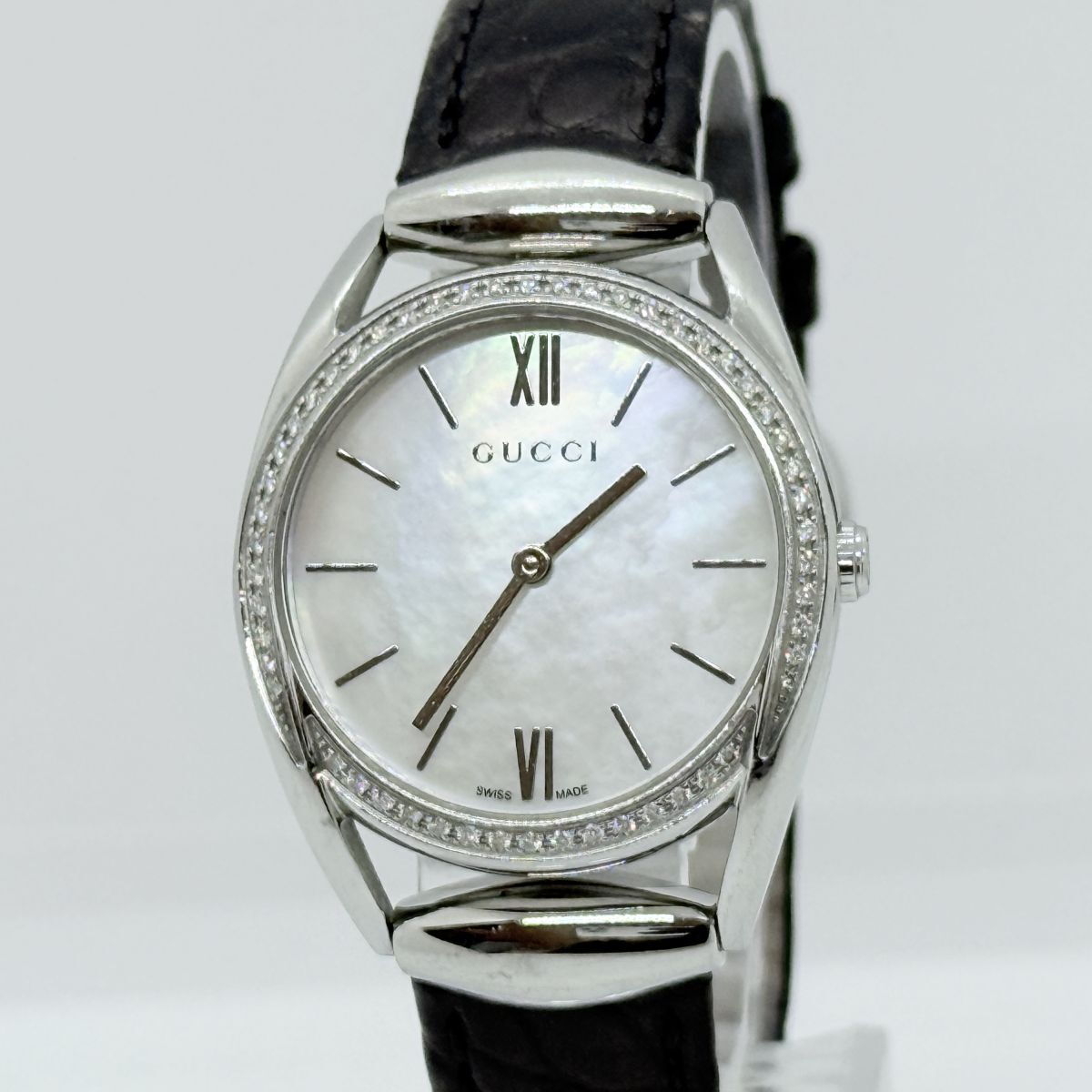 - M7341 GUCCI グッチ 140.5 ホースビット QZ 稼働品 ラインストーンベゼル レディース 腕時計 シェル文字盤