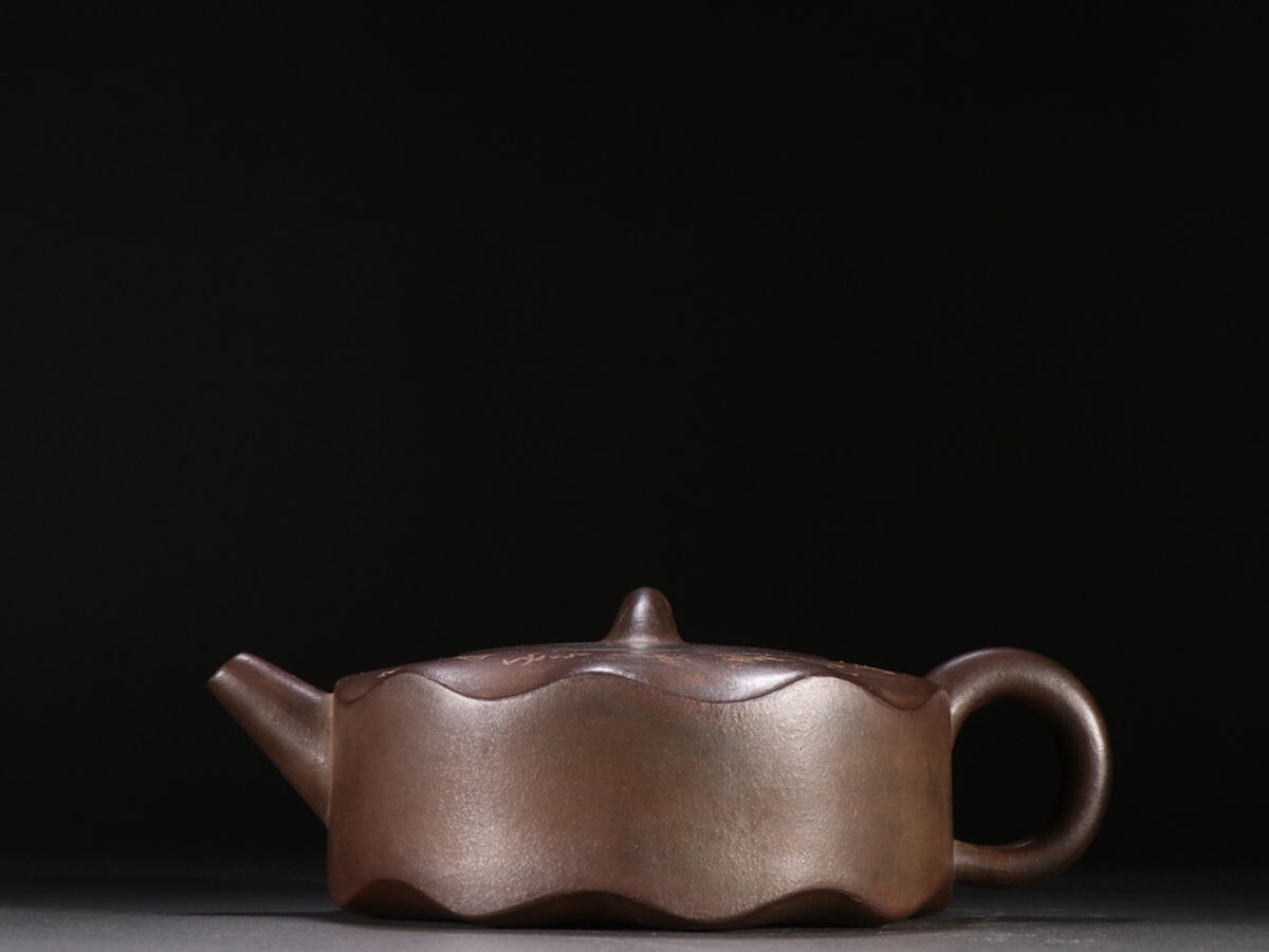 - 「紫砂彫 詩文紫砂茶壺 陳光明銘 清時代」陶磁器 急須 茶道具 古賞物 中国古美術 旧蔵出