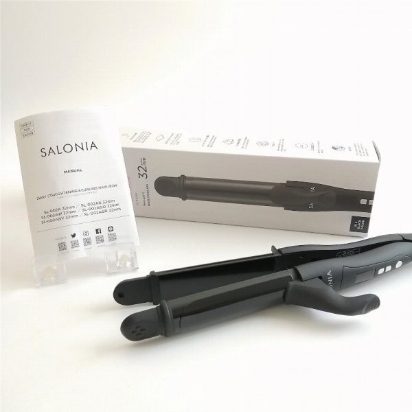 - SALONIA 2WAY ストレート&カールヘアアイロン オールブラック 32mm SL-002AB【PSEマークあり】【訳あり※ロック部分破損】38 00015