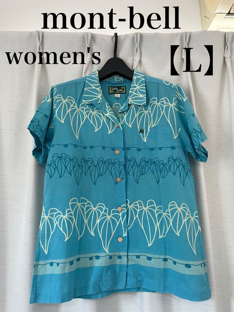 > mont-bell モンベル TAKEロハ 竹ロハ アロハシャツ 半袖 シャツ 水色 レディース L