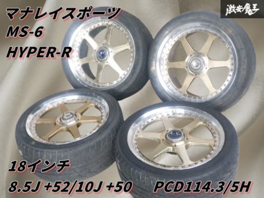> ●☆希少!☆ MANARAY SPORT MS-6 HYPER-R ゴールドディスク 18インチ 8.5J +52 10J +50 PCD114.3 5穴 ホイール 4本 タイヤ付 80 スープラ