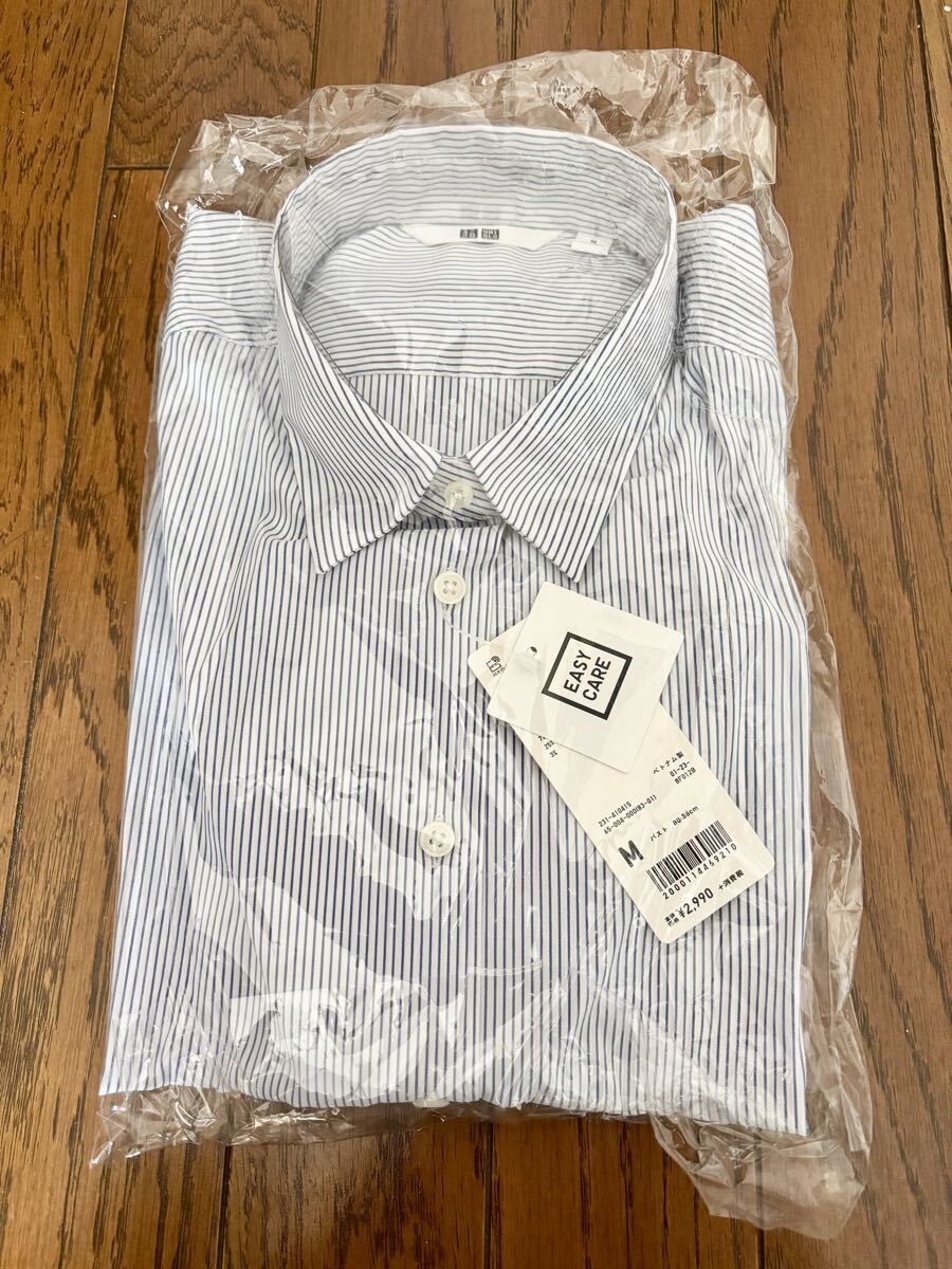 > ユニクロ スーピマコットン ストレッチ ストライプシャツ(長袖) ブルー Mサイズ