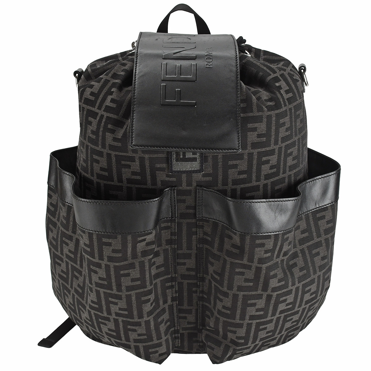 > フェンディ FENDI ズッカ柄 FFロゴ リュック ストライク バックパック 7VZ056 FFジャガード キャンバス レザー グレー ブラック 黒 中古