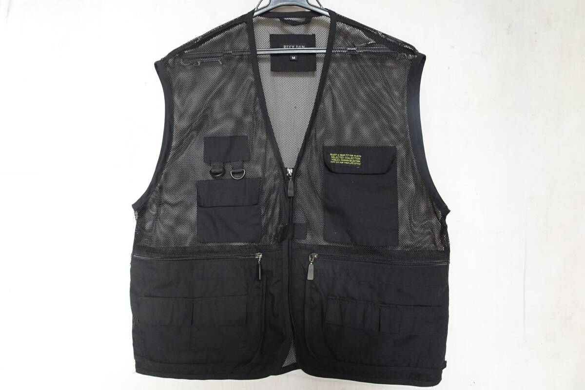 - RUCK DAM SPIRITS/アウトドアベスト/メッシュ素材/通気性/Vネック/前ジップアップ/多機能ポケット/黒/ブラック/Mサイズ(8/28R7)