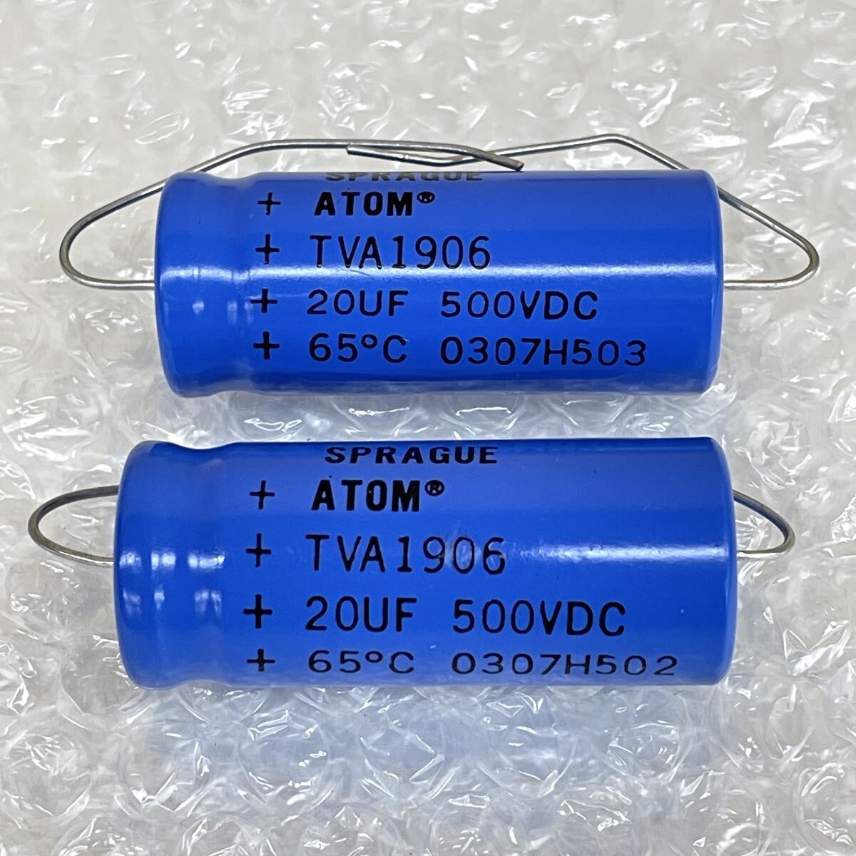 > 【A-4】 Sprague ATOM TVA1906 20UF 500VDC 65°C コンデンサ 2個 動作未確認 現状品 4456-1