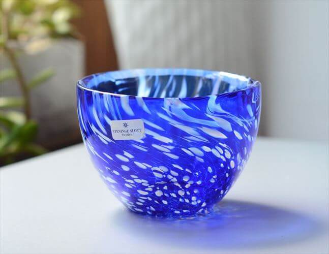 > スウェーデン STENINGE SLOTT きれいなブルーのガラスボウル 9.7cm 北欧 グラス ポット ヴィンテージ ig4593