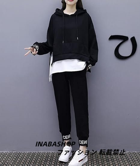 - 重ね着風 パーカー セットアップ ジャージ 上下2点セット レディース ジョガーパンツ スウェット スポーツウェア おしゃれ 大きいサイズ