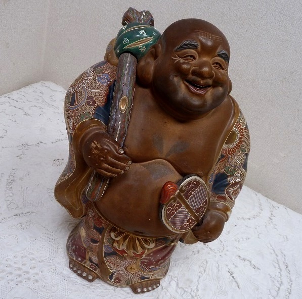 - (☆BM)九谷焼 七福神 布袋様 高さ40㎝/5.8kg 陶器製 縁起物 神様 仏像 仏教美術 日本伝統工芸 置物 オブジェ 吉祥物 品 佛教