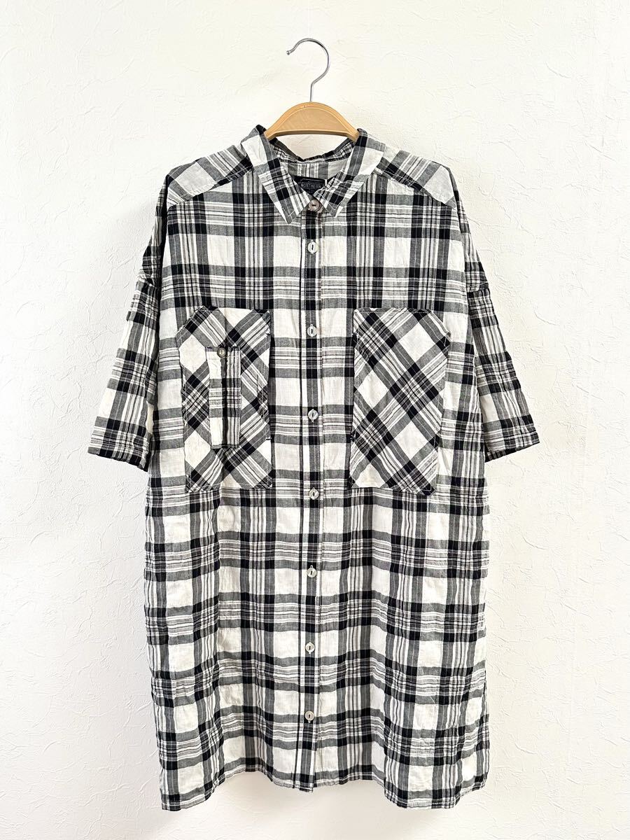 > 新品 タグ付き NORTHERN TRUCK 超ゆったりサイズ チェック柄シャツブラウス 丈長ゆったりサイズ シワ加工 綿混素材