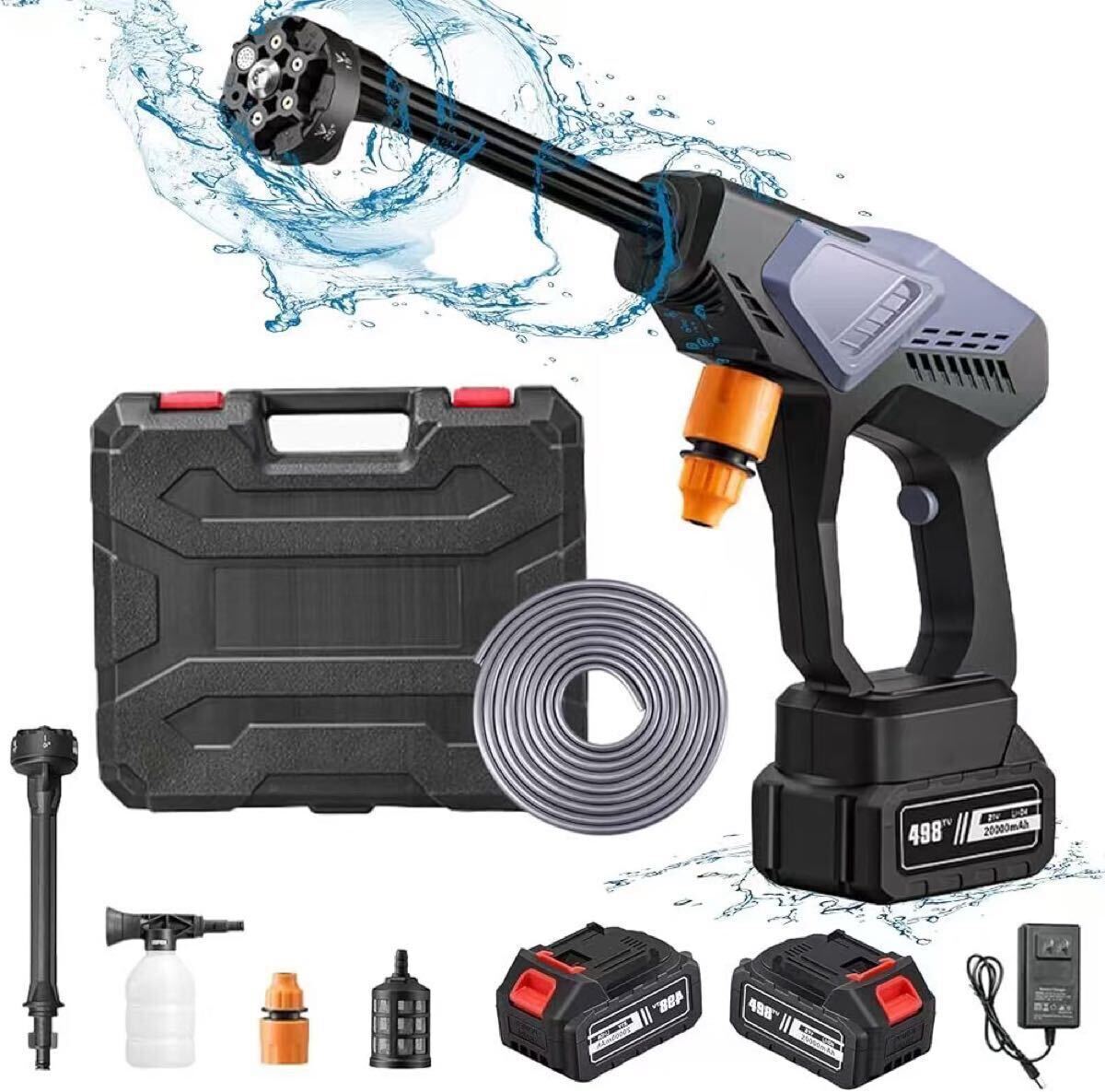 - コードレス高圧洗浄機 1080PSI ポータブルコードレス電動洗浄機 バッテリー駆動式高圧洗浄機 6 in 1ノズル高圧洗浄ガン 車、家庭、庭用