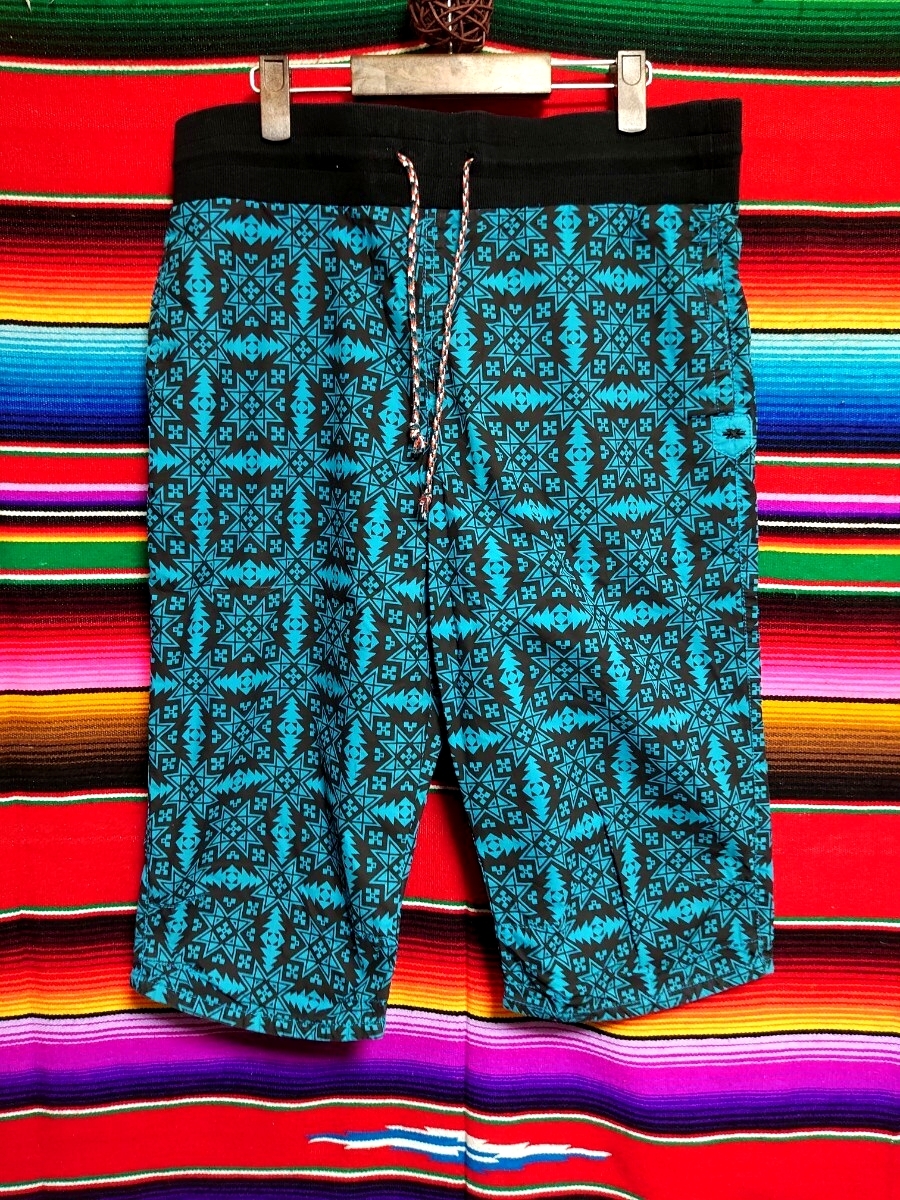 - X'tyle エクスタイル クロステック ネイティブ チマヨ柄 イージーハーフパンツ Lサイズ ターコイズブルー ブラウン ブラック