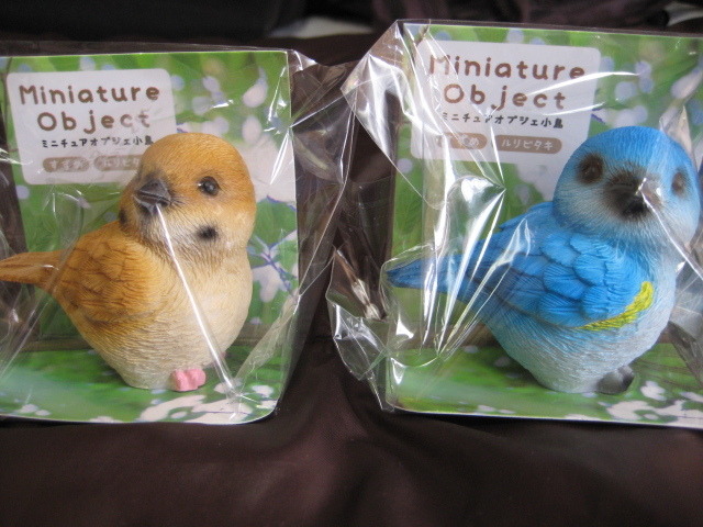 - フ ミニチュア・オブジェ 小鳥 すずめ ルリビタキ 2羽セット 鳥
