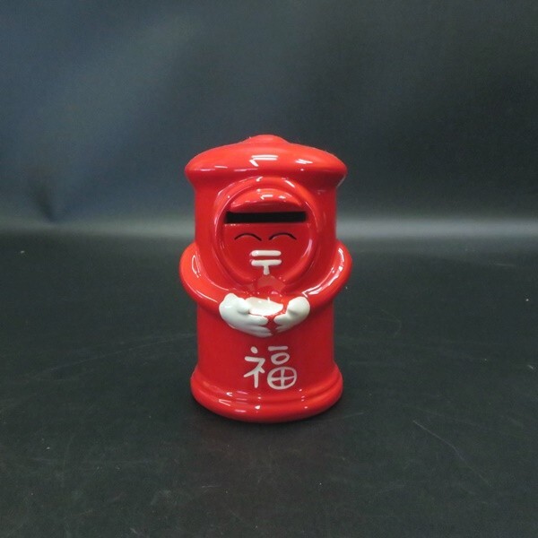 - U13 笑顔ポスト 貯金箱 手あり 約12㎝ 赤色 昭和レトロ 陶器製 ポスト型 ポスト 貯金箱 バンク 置物 オブジェ 貴重 当時物
