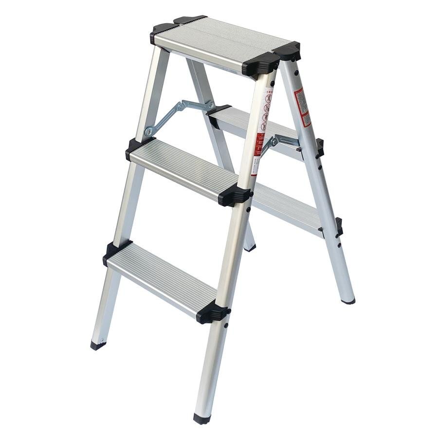 - 脚立 アルミ 3段 折りたたみ 踏み台 ステップ おしゃれ 軽量 室内 屋外 足場 踏台 梯子 はしご 耐荷重150kg シルバー