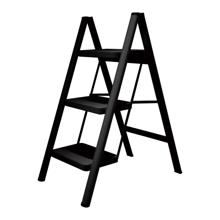 - ONE STEP 脚立 踏み台 3段 折りたたみ ステップ 踏台 おしゃれ アルミ 軽量 手すり 滑り止め ブラック