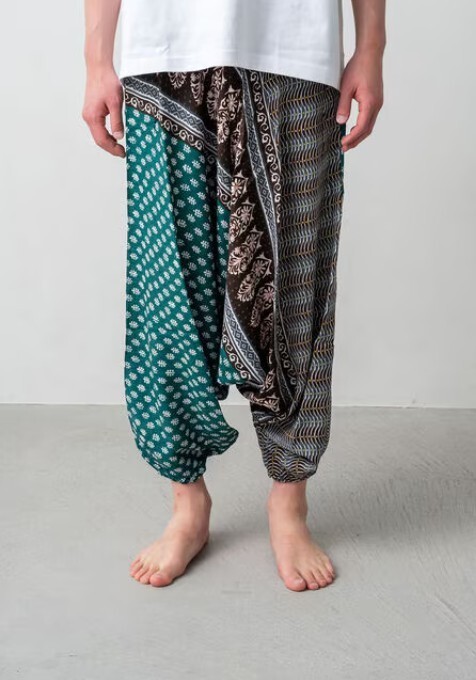 - 新品未使用 タグ付き 男女兼用 ふんわり サルエルパンツ エスニック アジアン ヒッピー ゴムウエスト フリーサイズ レーヨン インド ⑤