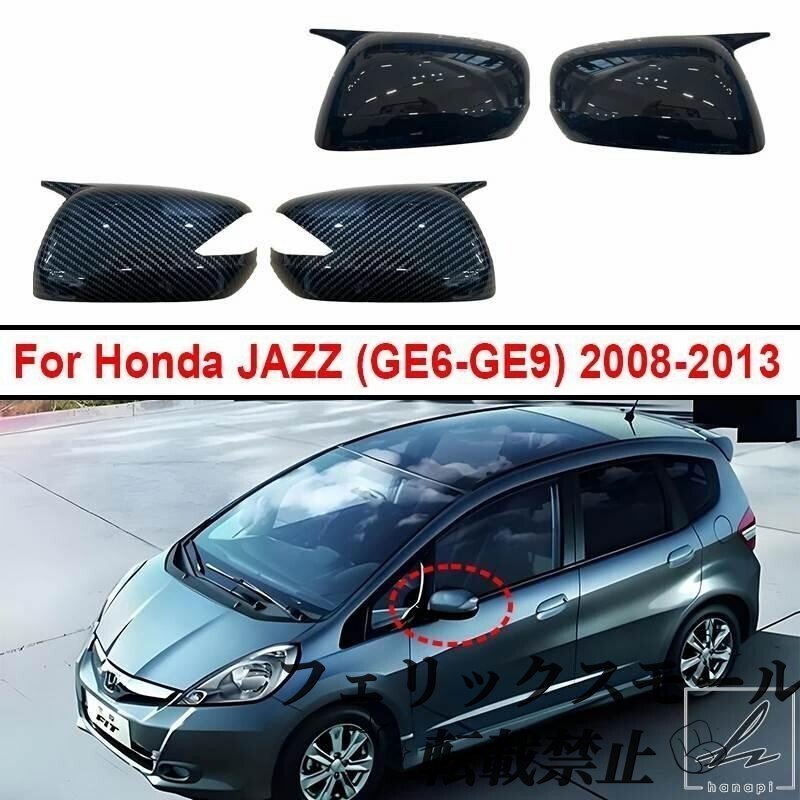 > HONDA JAZZ FIT GE GE6 GE8 2008-2013 用 サイドミラーカバー リアビューミラーキャップ ドアサイドリアビューウィングミラーカバーアドオ