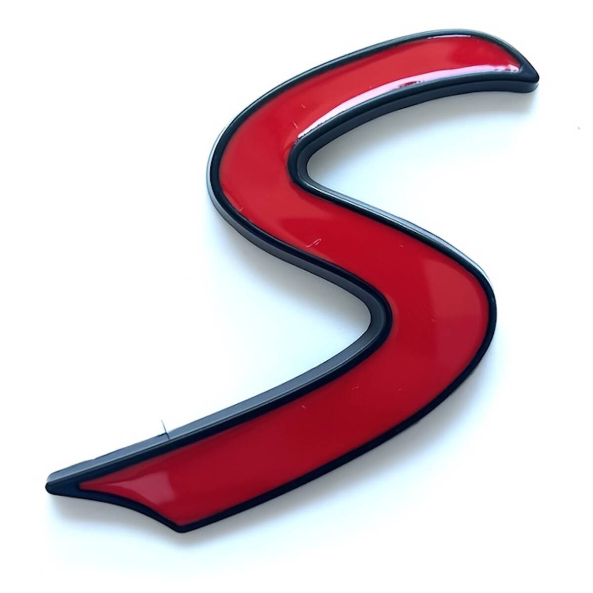 > エンブレム Sロゴ 金属 レッド ブラック 車用 6.8cm メタルステッカー プレート シール 3D 立体 バイク オートバイ 外装 飾り デコ t8259