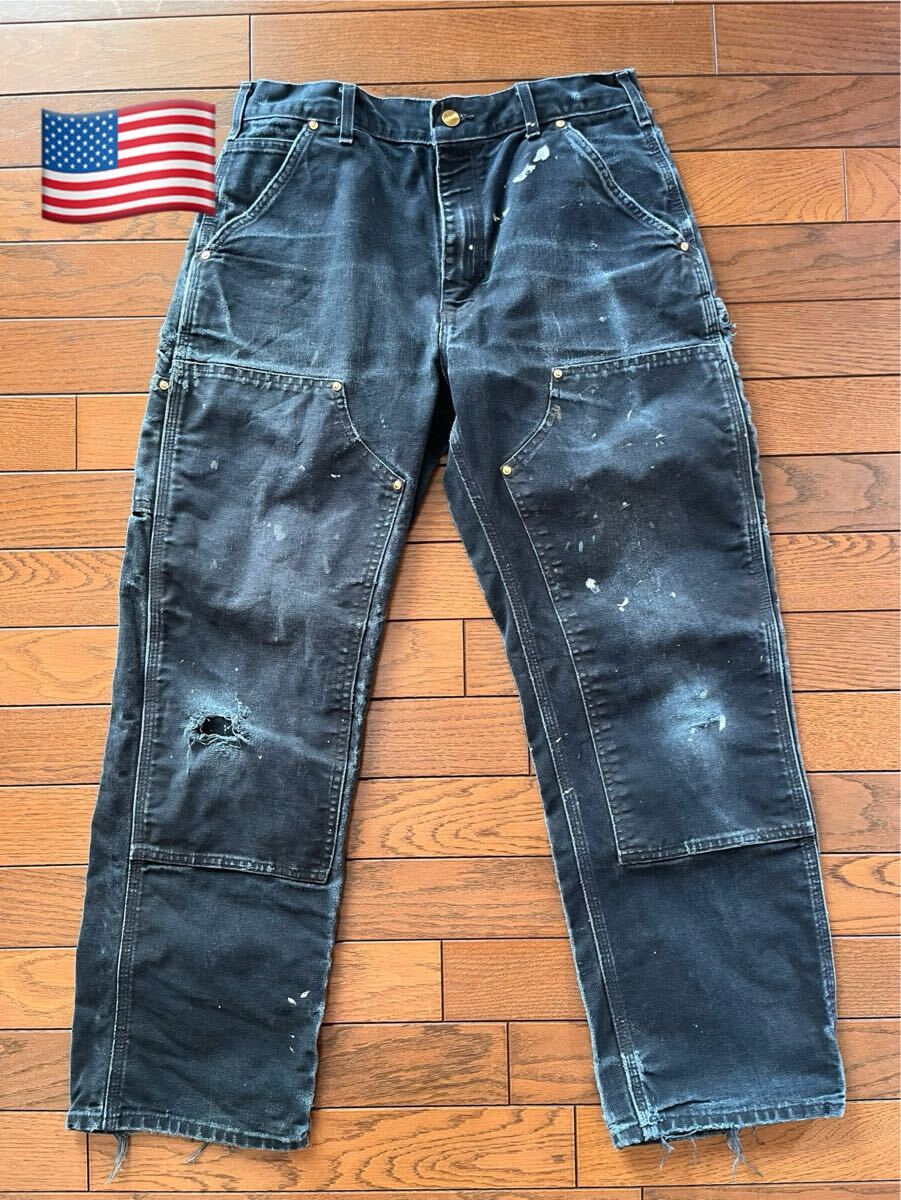 > USA製!CARHARTT DOUBLE KNEE ダブルニー ヴィンテージ カーハート アメリカ製 MADE IN USA フェード ダメージ ペイント