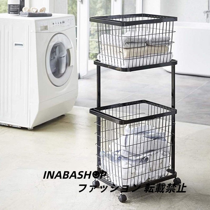 - ランドリーバスケット 2段 ラック キャスター付き ランドリー収納 洗濯カゴ 収納 おしゃれ 脱衣かご お風呂