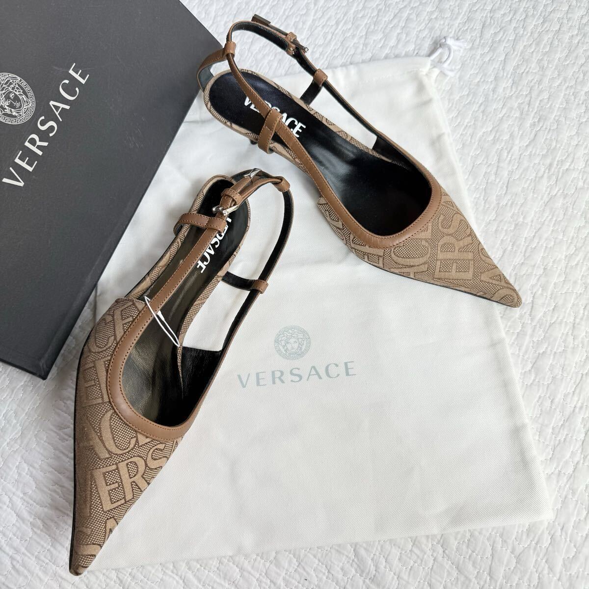 - 未使用 Versace ヴェルサーチェ パンプス オールオーバー スリングバック キャンバスサンダル 36 23cm