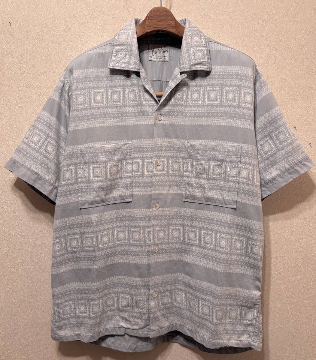 > 60sビンテージDa Vinciオープンカラー半袖シャツMボックス型レーヨン混コットン総柄ボーダー幾何学ネイティブ柄バティックUSA製60年代1960s
