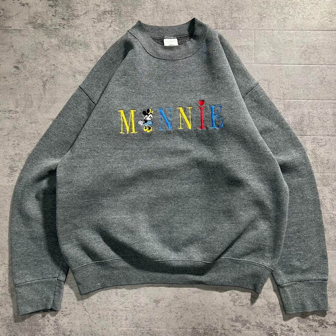> 90年代 USA製 MICKEY&Co ヴィンテージ ディズニー ミニー 刺繍スウェットシャツ トレーナー 古着 レディースL グレー / 3057