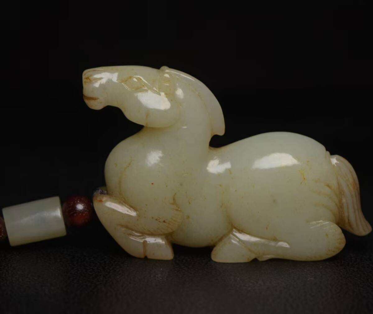 - 白玉 老玉 秘藏 清代 和田玉馬・唐馬・戦馬 唐物 古玉彫 天然石 稀少珍品 古美術 古賞物 古置物 旧蔵 901
