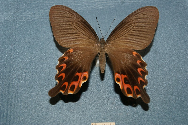 - A841★捕獲場所・石垣島オキナワカラスアゲハ・蝶の幅約9.5cm*捕獲1966年*1頭ズツ手書き蝶の下に国内で捕獲蝶の名前