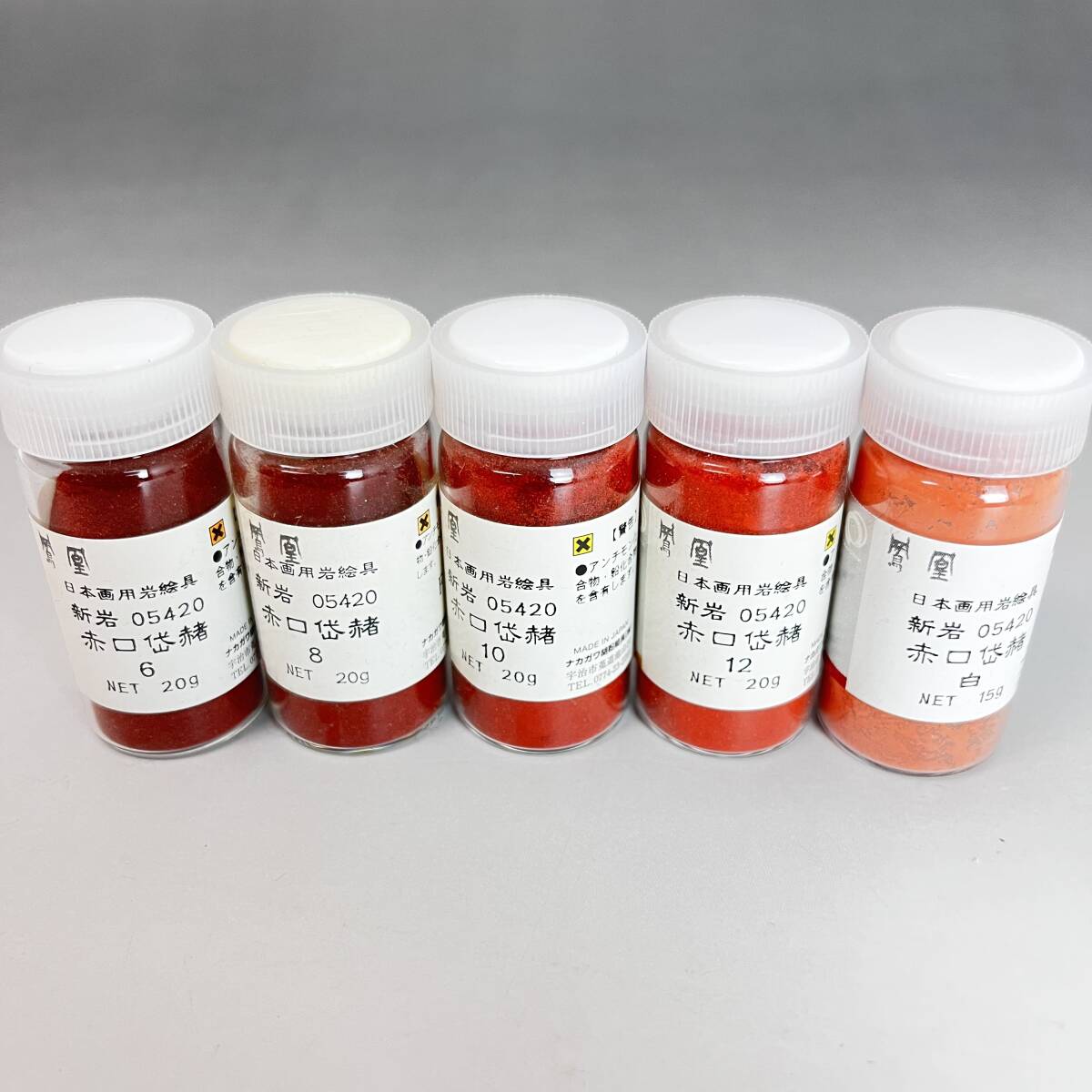 > ナカガワ胡紛絵具◆日本画用新岩絵具【鳳凰 赤口岱赭 6番/8番/10番/12番/白】20g/15g 5点セット◆日本画 画材 絵の具