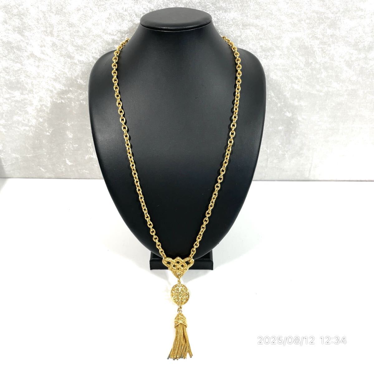 - SONIA RYKIEL ソニアリキエル SRロゴ 編み込み タッセル フリンジ ゴールドカラー ロング ネックレス アクセサリー 装飾品 小物