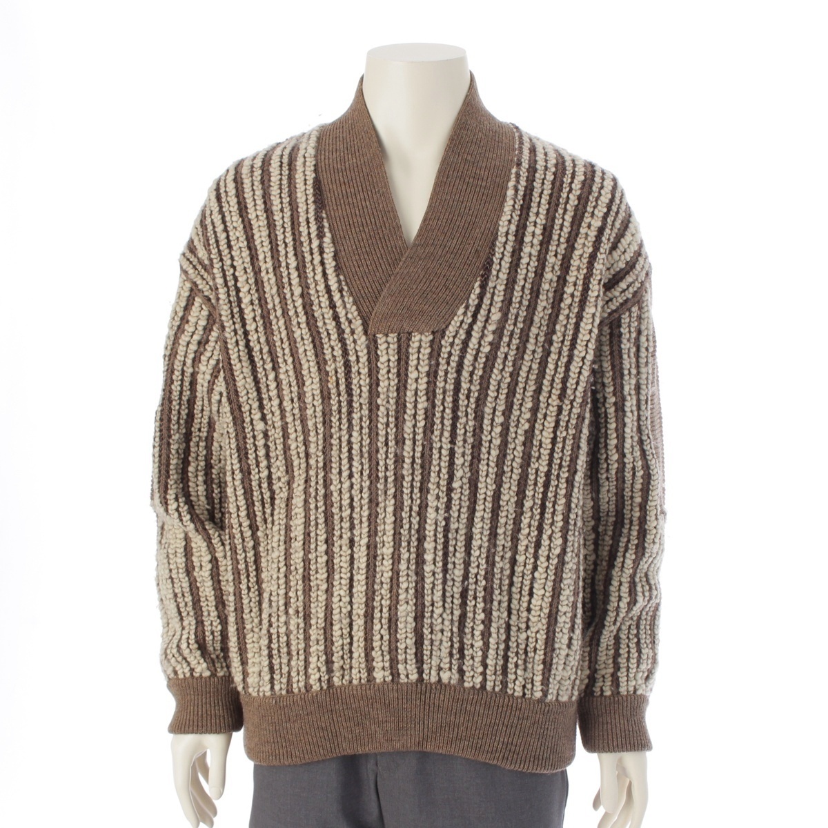 > イッセイミヤケ 80S 筆タグ ウール 厚手 ストライプ セーター XM36201DN ブラウン S【中古】