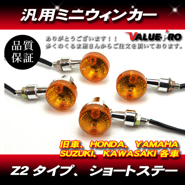 > ウインカー ミニウインカー KAWASAKI Z2タイプ 汎用 旧車 4個セット ショートステー付 HONDA YAMAHA SUZUKI 絶版車